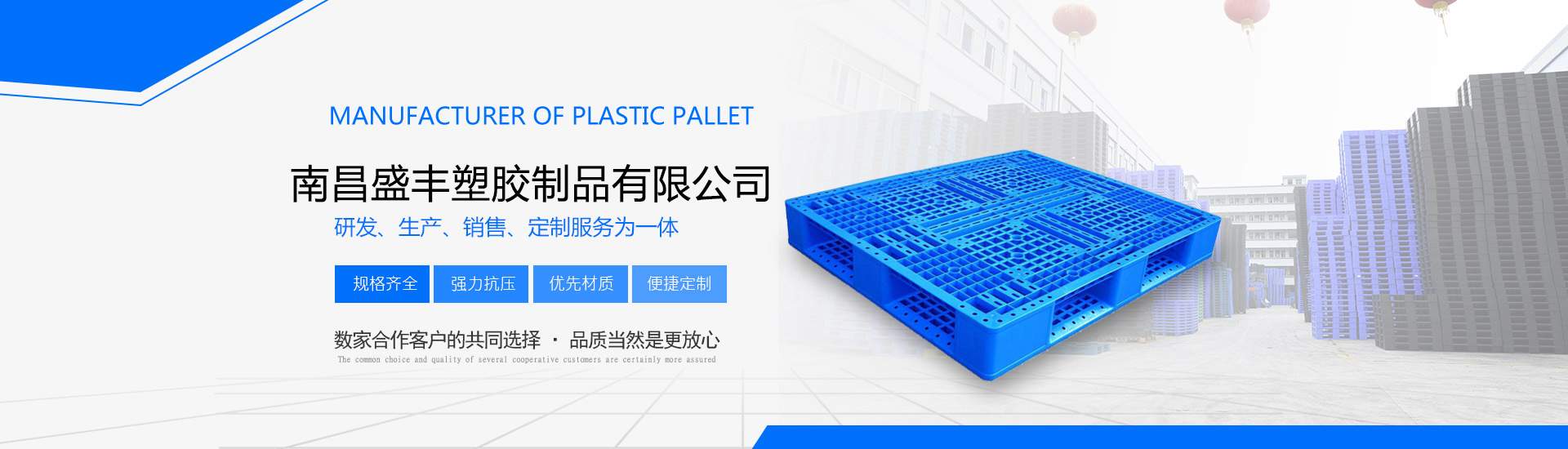 南昌盛豐塑膠制品有限公司擁有先進大型注塑、吹塑滾塑成型設備,技術力量雄厚,是專業生產工業塑料產品的企業。主營產品:塑料托盤、凹槽印刷托盤、煙標煙盒印刷托盤、貨架叉車專用托盤、出口托盤、抗摔吹塑托盤、塑料棧板、塑料吹塑托盤、塑料地臺板、塑料倉庫防潮板、塑料周轉箱、EU物流箱、歐標箱、折疊箱、工具箱、食品箱、面包箱、面包架、周轉筐、籮、化工桶、PE水塔、塑料PE水箱、垃圾桶、塑料加藥箱、塑料一噸方桶、塑料IBC噸桶、打不爛餐具消毒箱、等制品。我們秉承誠信服務的意念,在產品的售后服務上,我們有著專業的業務人員定時跟進,確保客戶滿意度!